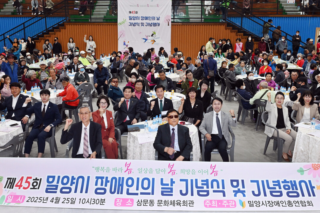밀양시는 25일 밀양문화체육회관에서 장애인 가족과 자원봉사자 등 800여 명이 참석한 가운데장애인총연합회(회장 황순옥) 주관으로 '제45회 장애인의 날 기념행사'를 개최했다.
