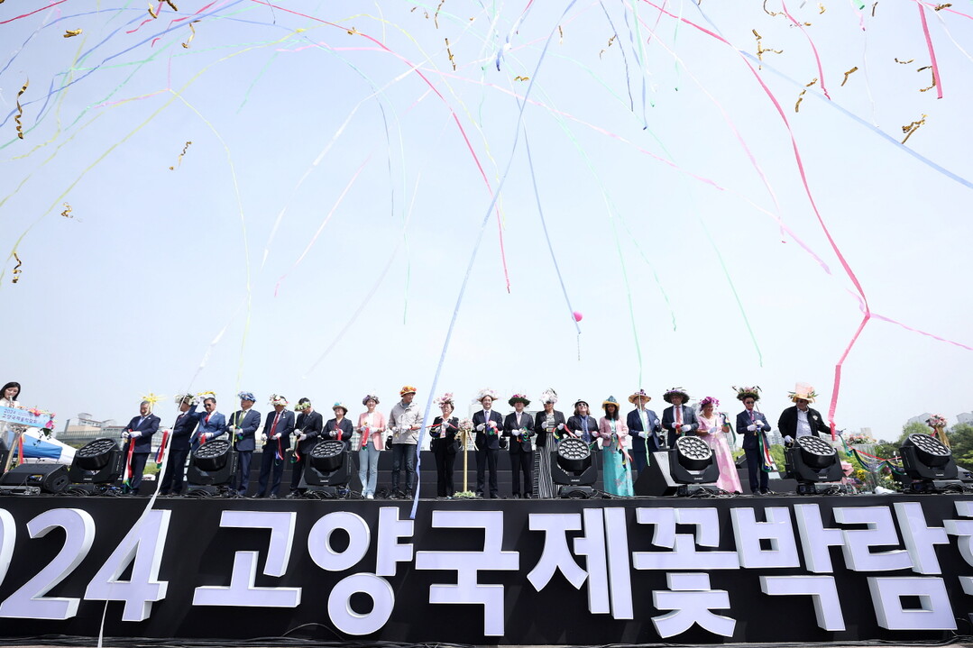 26일 일산호수공원 노래하는 분수광장에서 시민 1000여 명이 참가한 가운데 '2024 고양국제꽃박람회'가 개막됐다.