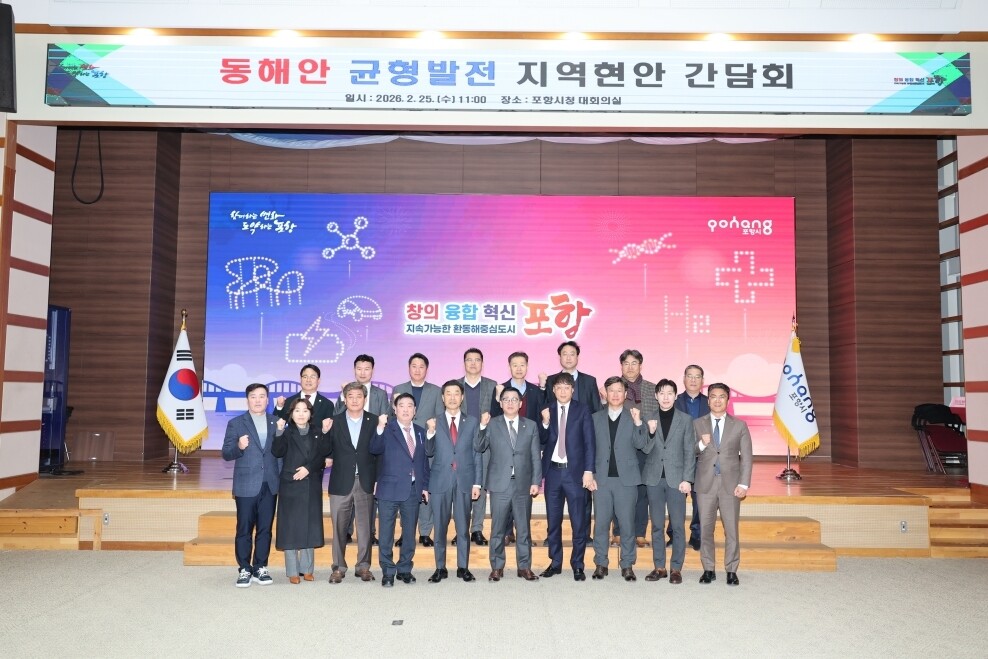 경북 포항시는 25일 시청 대회의실에서 2027년도 국비 확보 전략과 주요 현안사업을 논의하기 위한 '동해안 균형발전 지역현안 간담회'를 가졌다.