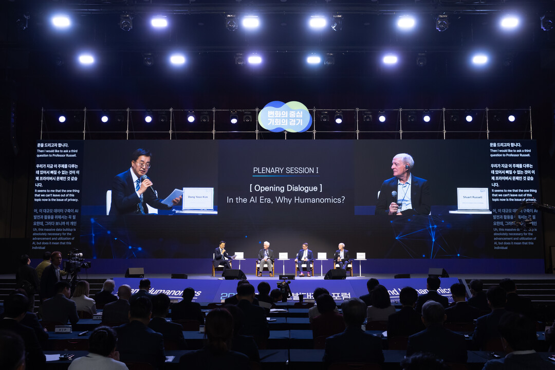 개회사에 이어 'AI 교과서'로 불리는 '인공지능: 현대적 접근방식(Artificial Intelligence: A Modern Approach)'의 저자이자 UC버클리대 컴퓨터과학 교수인 스튜어트 러셀(Stuart Russell) 교수와 휴머노믹스 개념과 원리를 정의하고 발전시킨 채프먼대학교 경제학·법학 교수인 바트 윌슨(Bart J. Wilson) 교수가 "AI, 성공한다면?(What we succeed?)"와 "왜 휴머노믹스가 중요한가?(Why Humanomics Matters?)"에 대해 각각 기조연설을 했다.
