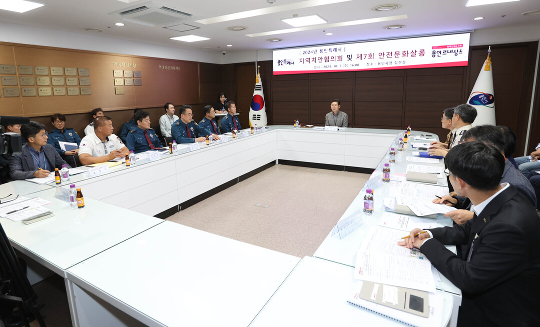 용인시는 지난 2일 오후 시청 접견실에서 시·교육·경찰·소방 관계기관 합동으로 '2024년 지역치안협의회'와 '제7회 안전문화살롱 정기회의'를 진행했다고 3일 밝혔다.