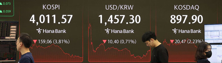 14일 코스피는 전일 대비 3.81% 급락한 4011.57로 장을 마감했다. 코스닥(897.90)은 2.23% 떨어졌다.
