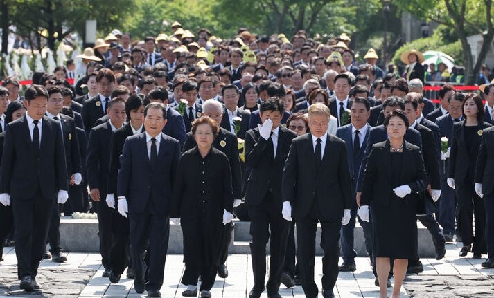 문재인 전 대통령을 비롯한 야권 지도부가 23일 노무현 전 대통령 서거 15주기 추도식에 총집결했다.