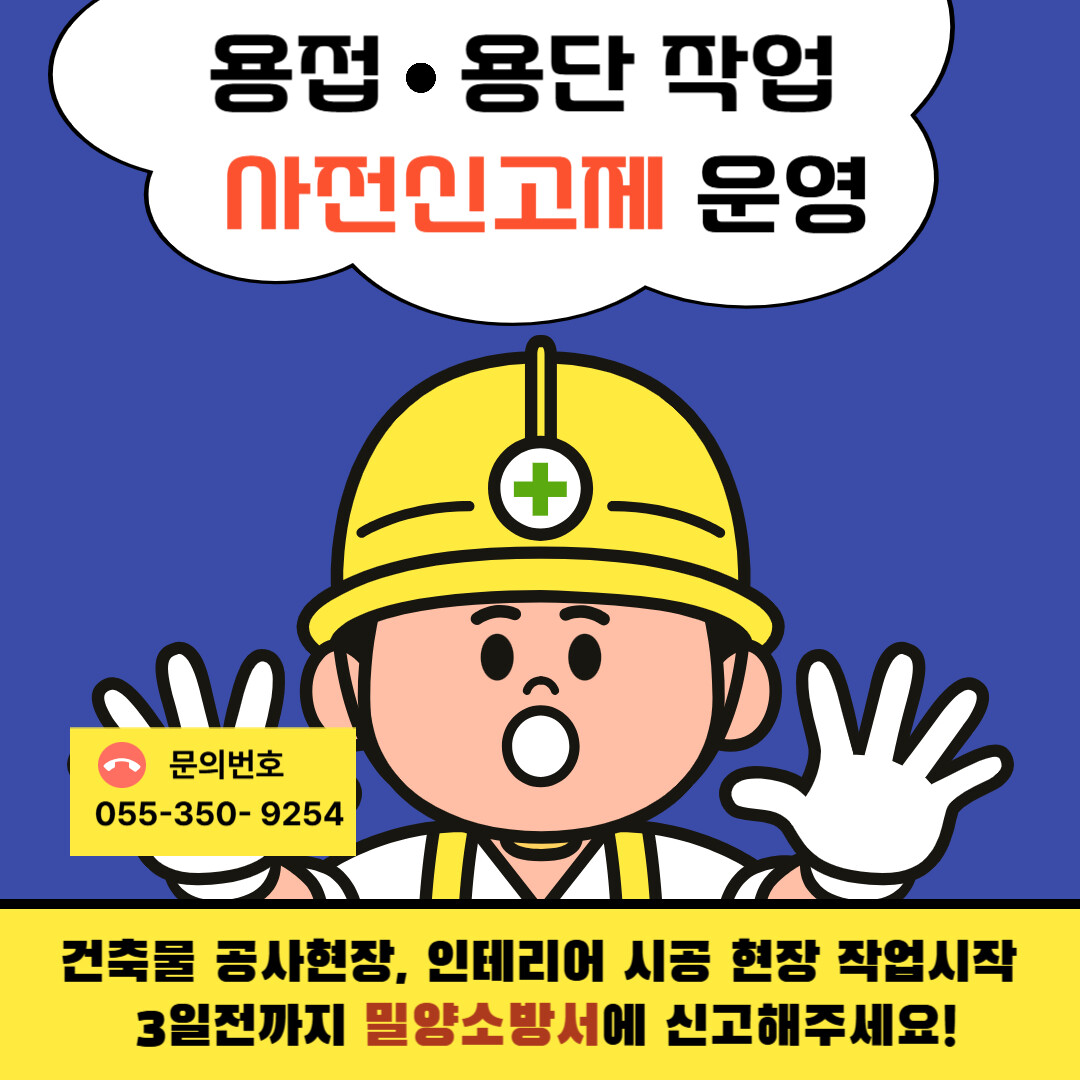 ▲ 공사장 용접·용단 작업 사전신고제 카드뉴스 [밀양소방서 제공]