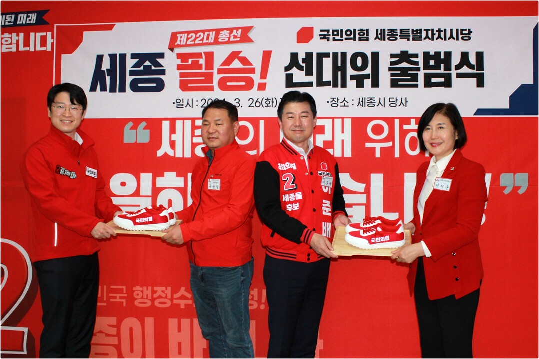 출범식엔 공동선대위원장인 이기순 전 차관, 류제화 세종시갑후보, 이준배 세종시을 후보와 유용철 미래전략선대위원장, 윤진국 수석부위원장 등 선대위 및 핵심당직자들이 참석했다.