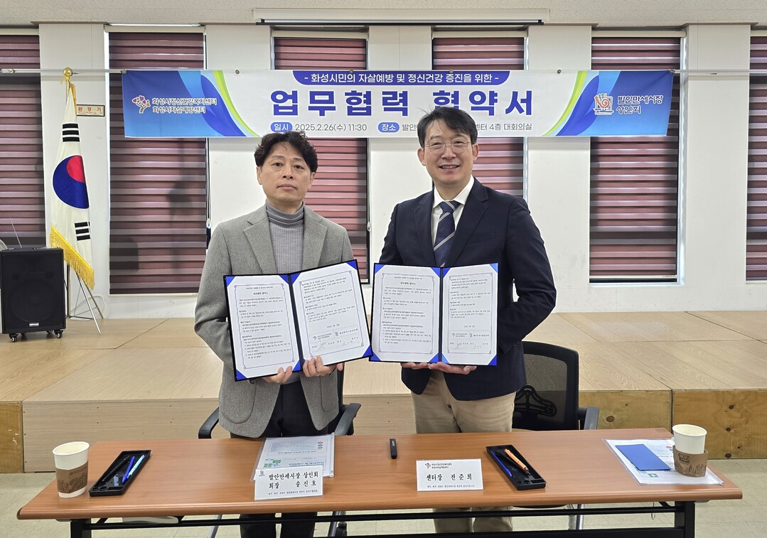 화성시정신건강복지센터 부설 자살예방센터는 26일 발안만세시장 상인회와 '화성시민의 자살 예방 및 정신건강 증진을 위한 업무협약(MOU)'을 체결했다.