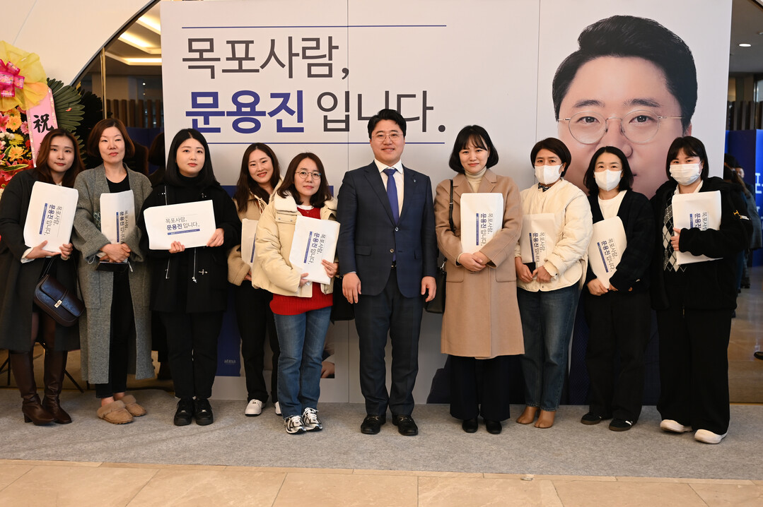 | ▲ 지난 26일 문용진 더불어민주당 보건의료특별위원회 부위원장이 목포 에메랄드웨딩홀에서 열린 '목포사람 문용진입니다'라는 책 출판기념회에서 지지자들과 기념사진을 촬영하고 있다. [문용진 캠프 제공] |