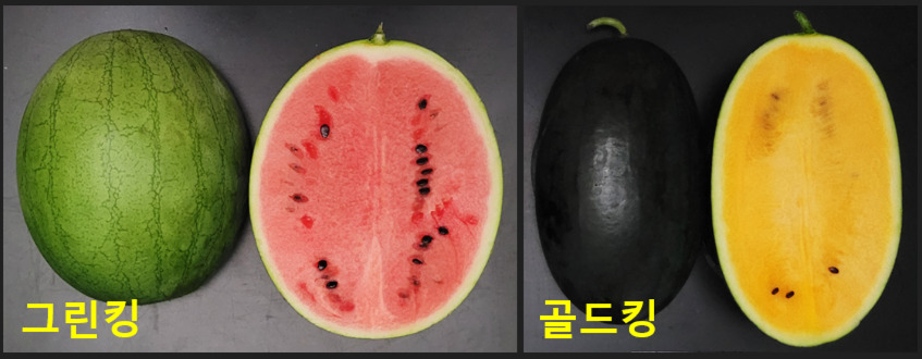 | ▲중소형 칼라수박인 그린킹과 골드킹.[충북농기원 제공] |