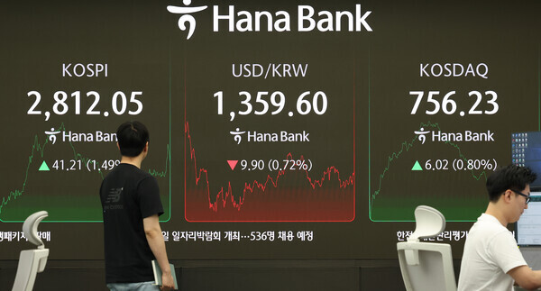5일 코스피는 전일 대비 1.49% 오른 2812.05로 장을 마감했다. 코스피가 종가 기준 2800선을 넘어선 건 지난해 7월 18일(2824.35) 이후 10개월여 만이다. 이재명 대통령 당선 직후인 지난 4일 2.66% 급등한 코스피는 이날 가파른 상승세를 이어가 2800대에 안착했다.