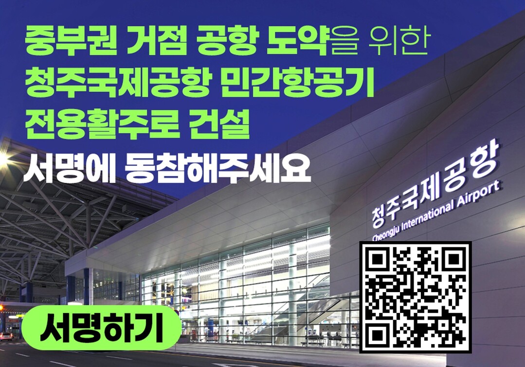 | ▲민간항공기 전용활주로 건설 서명운동 온라인 홍보 배너.[충북도 제공] |