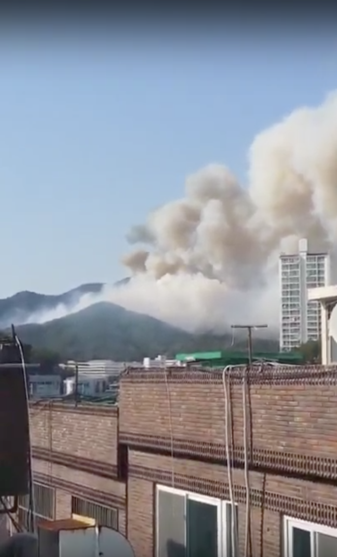 소방당국은 인근 학교와 아파트 등에 대피하도록 안내하고, 만일의 상황에 대비해 산책로 출입구와 주변을 통제하고 있다.