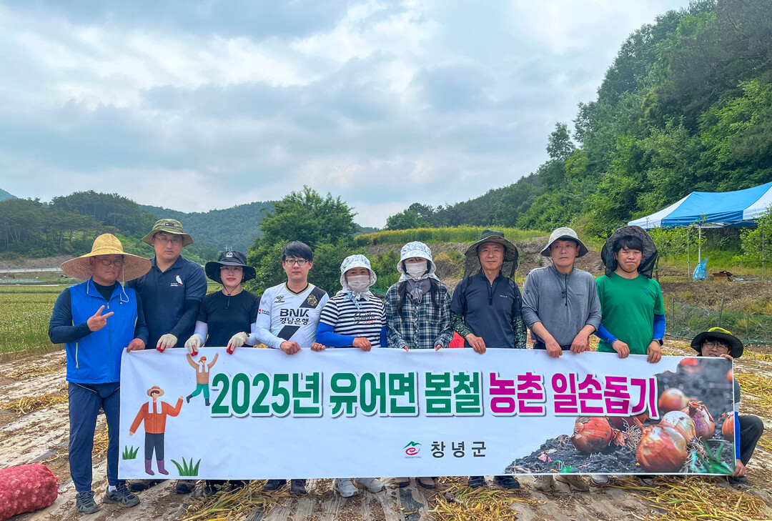 경남 창녕군 도천면과 유어면은 지난 22일 본격적인 마늘 수확철을 맞아 고령 농가를 돕기 위한 농촌 일손돕기 활동을 실시했다고 밝혔다.