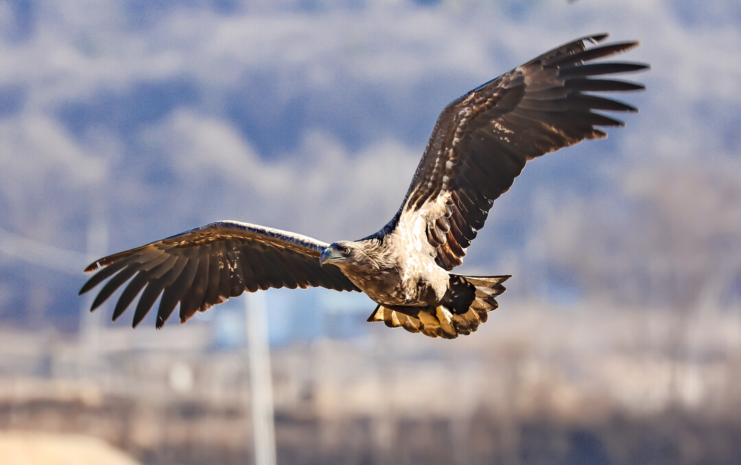 | ▲ 독수리 무리 속에서 날고 있는 흰꼬리수리. [이상훈 선임기자] |