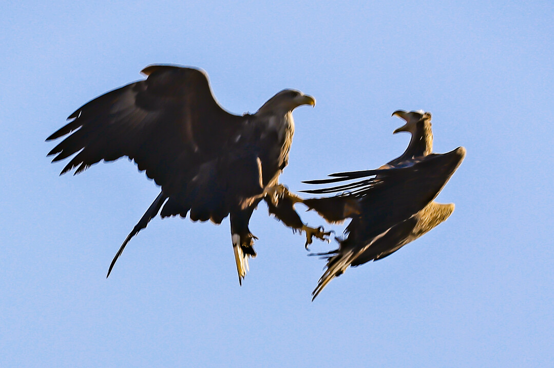 | ▲ 공중에서 영역 다툼을 하고 있는 흰꼬리수리와 독수리. [이상훈 선임기자] |