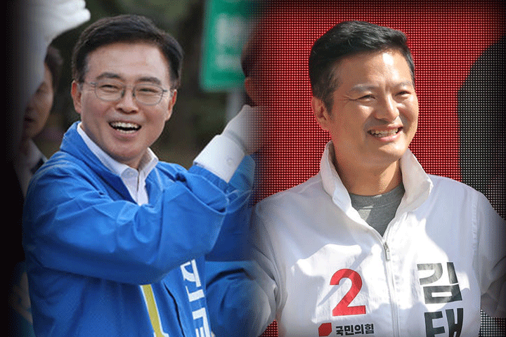 | ▲ 서울 강서구청장 보궐선거에 출마한 더불어민주당 진교훈, 국민의힘 김태우 후보가 지난 10일 각각 강서구 강서구청 사거리와 아파트단지 인근에서 선거 유세를 하고 있다. [뉴시스] |