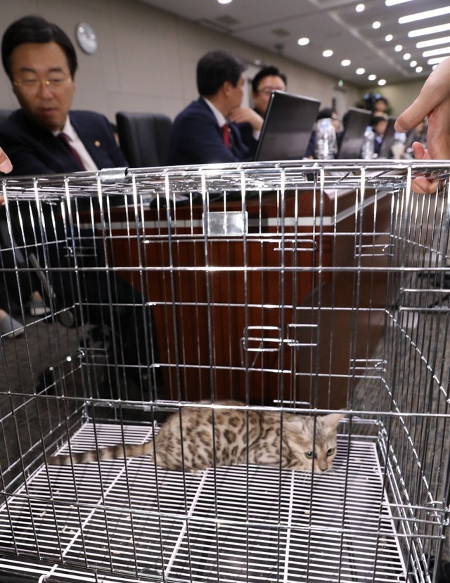 김병욱 더불어민주당 의원은 "벵갈고양이를 이 회의장에 갖고 온 것이 동물학대 아닐까 싶다"며 "벵갈고양이가 우리에 갇혀서 나왔고 눈빛을 보면 사방을 불안에 떨면서 주시하는 모습을 봤다"고 지적했다.