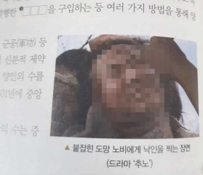앞서 교학사는 자사의 '한국사능력검정시험 고급 최신기본서'에 노 전 대통령을 비하하는 합성 사진을 사용해 논란이 된 바 있다.