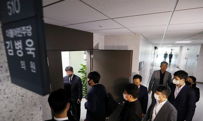 | ▲ 검찰 관계자들이 11일 오전 '대선 여론조작 의혹`과 관련해 더불어민주당 김병욱 의원의 보좌관에 대한 압수수색을 하기 위해 국회 의원회관 내 김 의원 사무실에 들어가고 있다. [뉴시스] |