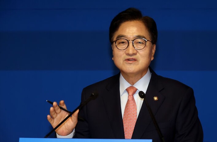 | ▲ 우원식 국회의장이 21일 국회 사랑재에서 열린 기자간담회에서 발언하고 있다. [뉴시스] |