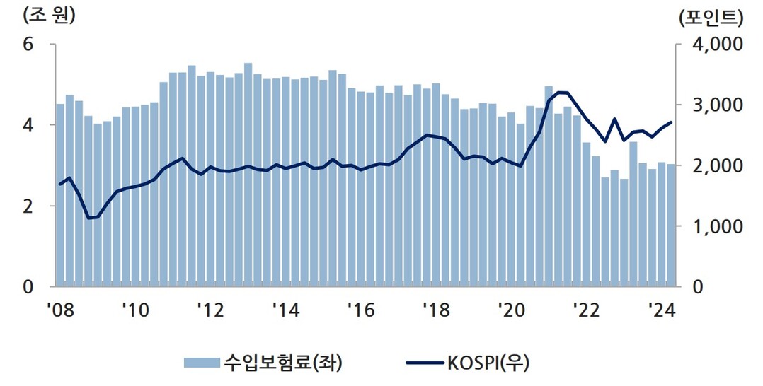 | ▲ 주가지수와 변액보험 수입보험료. [보험연구원] |
