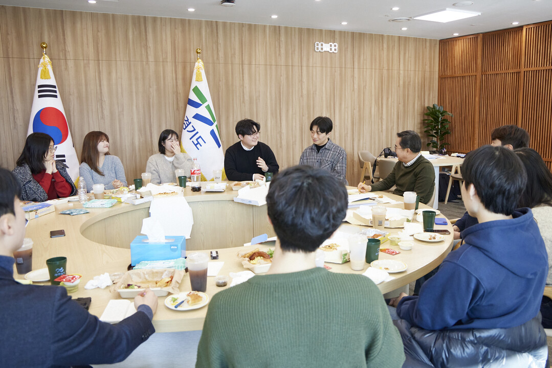 | ▲ 18일 오전 경기도청 집무실에서 김동연 경기도지사가 아주대학생 9명과 함께 브라운백 미팅을 하고 있다. [경기도 제공] |