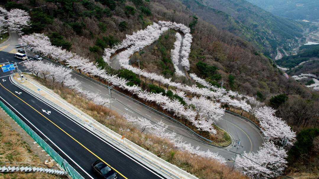 의령군은 벚꽃 명소로 각광받는 자굴산 관광순환도로(일명 색소폰도로) 주변 벚꽃이 만개해 절정을 이루고 있다고 11일 밝혔다.