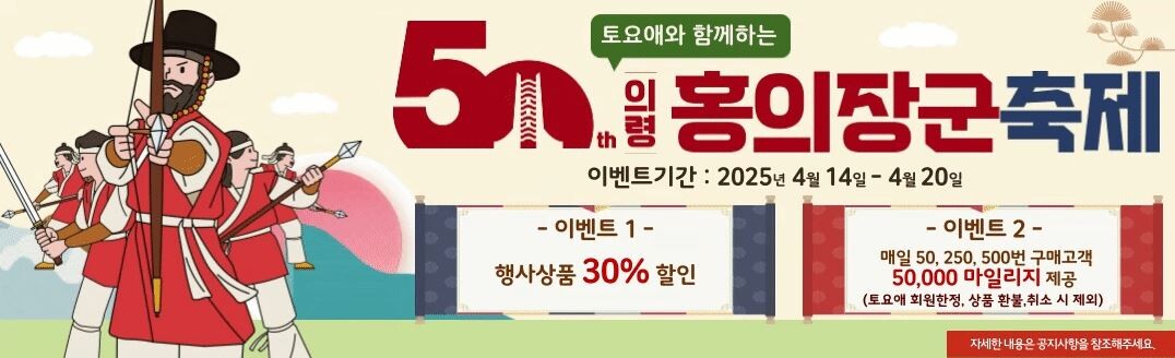 행사 동안 지역 대표 특산물 토요애수박을 비롯해 부자1번지쌀, 망개떡, 블루베리 등 다양한 대표 인기상품을 30% 할인된 가격으로 제공된다. 특히 홍의장군 축제를 기념, 매일 50·250·500번째 구매 고객에게 5만 마일리지를 증정하는 등 통 큰 이벤트를 준비했다.