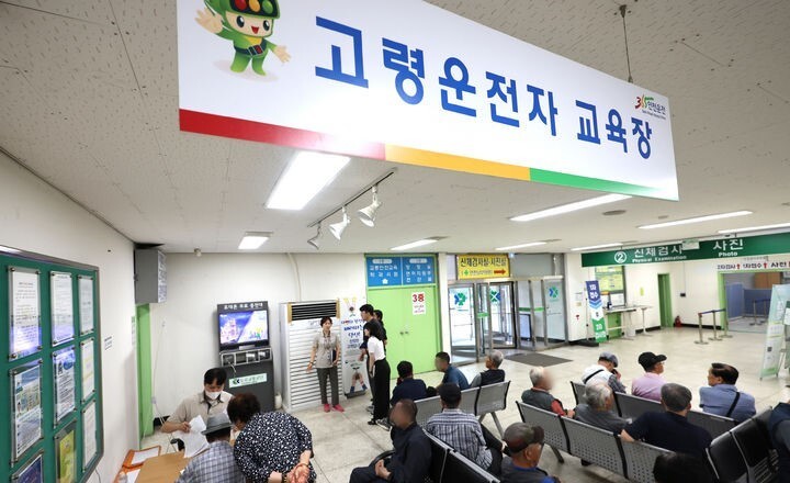 | ▲ 인천 남동구 도로교통공단 인천운전면허시험장에서 고령운전자들이 교통안전교육을 받기 위해 교육장 앞에서 대기하고 있다. [뉴시스] |