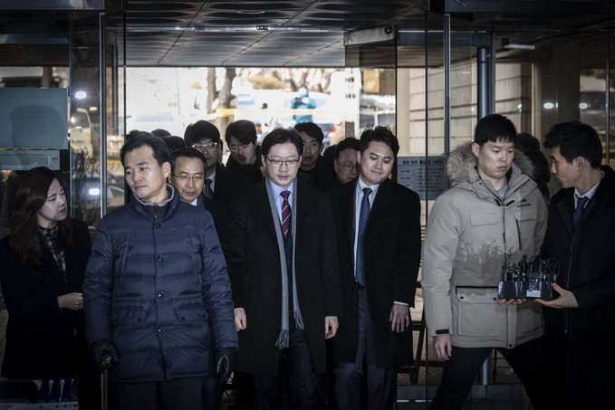 이날 서울중앙지법 형사합의32부(부장판사 성창호)는 컴퓨터등장애업무방해 등 혐의로 기소된 김 지사에게 실형을 선고하고 법정구속했다. 컴퓨터 등 업무방해 혐의에는 징역 2년을, 공직선거법 위반 혐의엔 징역 10개월에 집행유예 2년을 선고했다.
