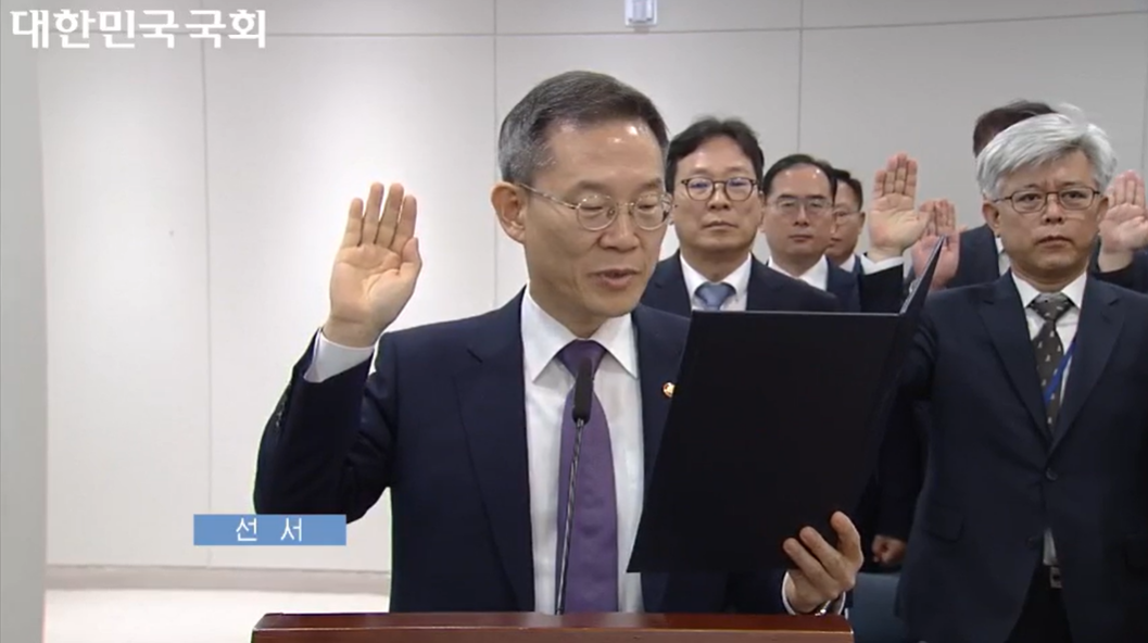 | ▲ 이종호 과기정통부 장관이 11일 정부세종청사에서 진행된 과방위 국감에서 선서를 하고 있다. [국회의사중계시스템 캡처] |