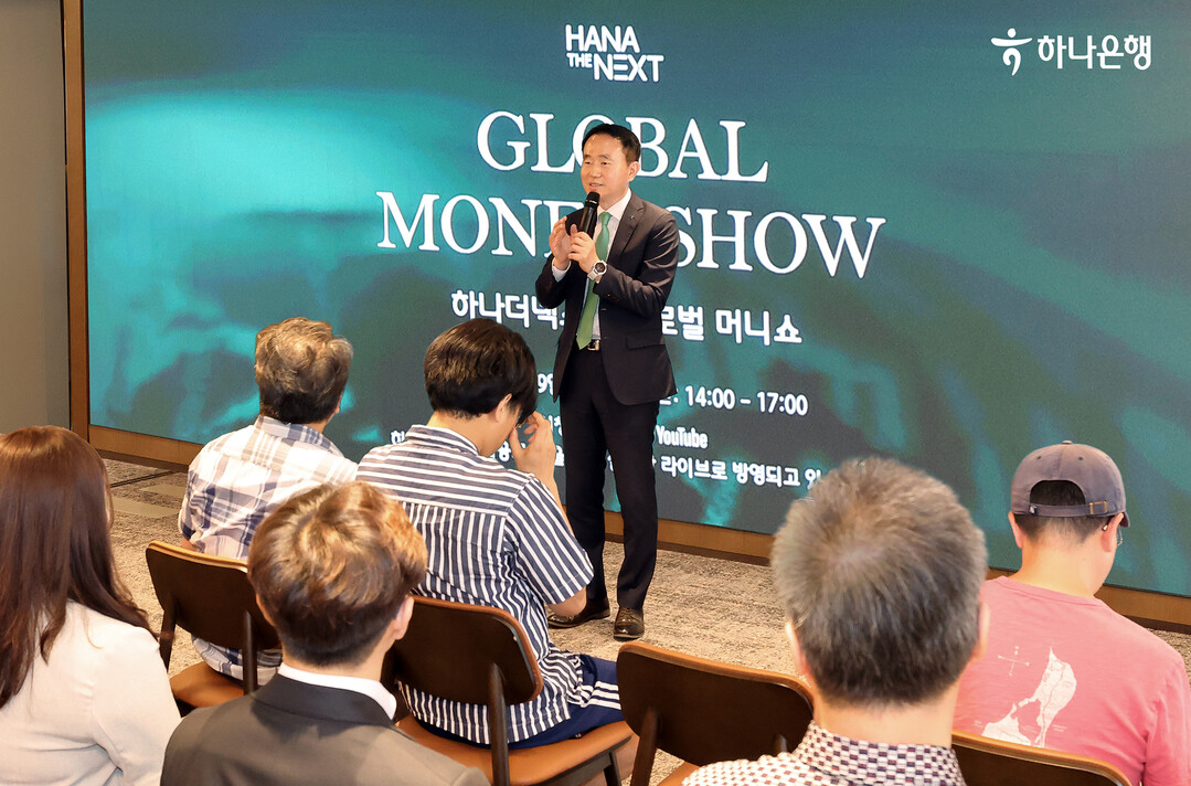| ▲ 김영훈 하나은행 자산관리그룹 부행장이 19일 서울 삼성동 Place1에서 열린 '하나더넥스트 글로벌 머니쇼' 세미나에서 안내를 하고 있다. [하나은행 제공] |