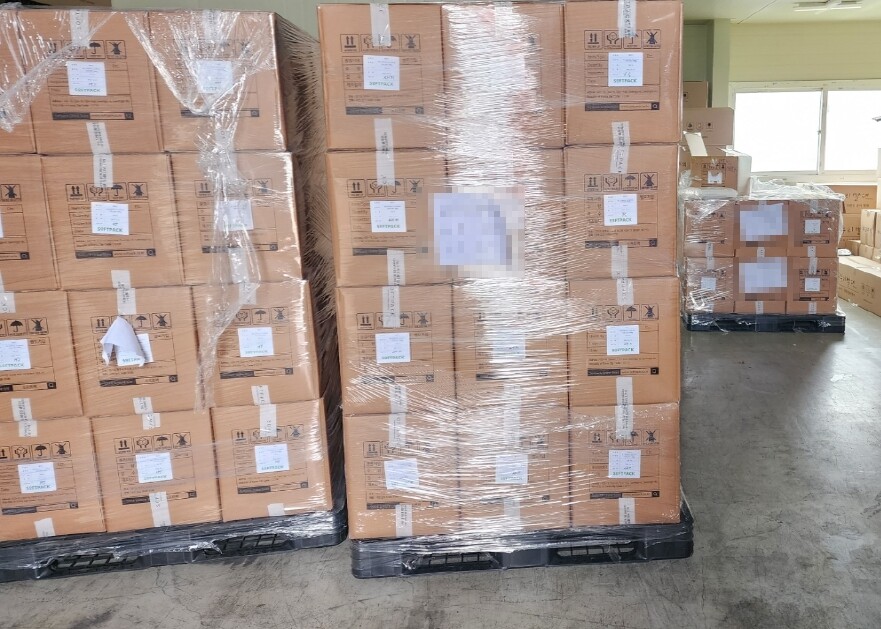 | ▲ 창고에 재고로 쌓여있는 종이빨대.[충남도 제공] |