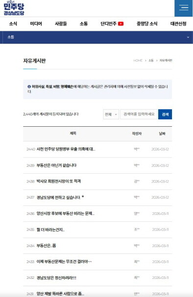 | ▲ 더불어민주당 경남도당 게시판 캡처 |