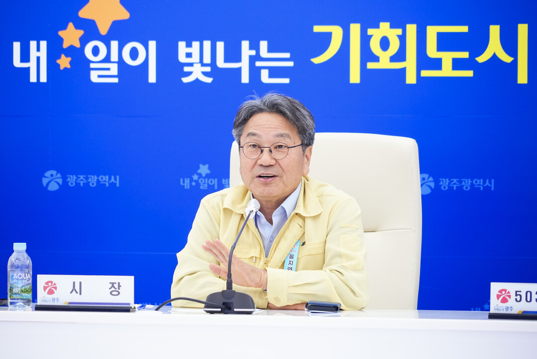 | ▲ 강기정 광주광역시장이 21일 오후 시청 충무시설에서 열린 2025 을지연습 종합보고회에 참석해 인사말을 하고 있다. [광주광역시 제공] |