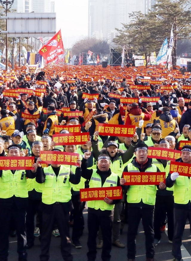 여의도에는 집회 시작 전부터 경기·인천·충남·충북·대구·세종 등 지방 번호판을 단 택시가 모여들었다. 주최 쪽은 택시 2000여대가 여의도공원 옆 여의대로 변에 주차된 것으로 파악했다.