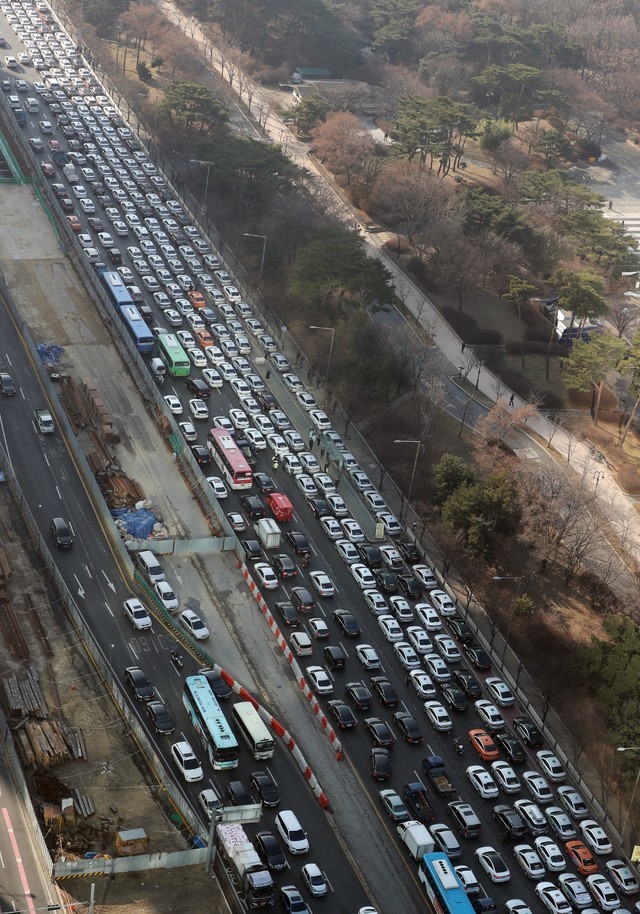 주차된 택시로 여의도뿐 아니라 주변의 마포대로, 원효대교 부근 등 도로에도 극심한 교통 체증이 빚어졌다.