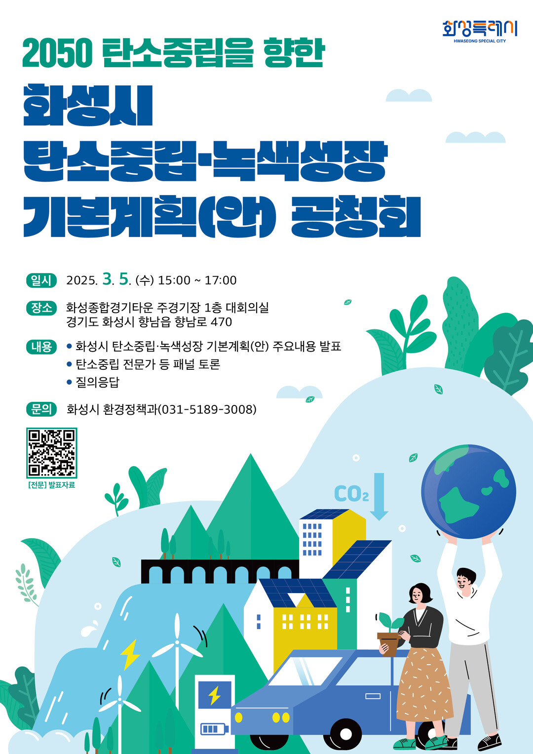 행사는 △온실가스 배출 현황 및 향후 전망 △중장기 감축 목표 설정 △부문별 온실가스 감축 대책 등 '화성특례시 탄소중립 기본계획(안)'의 주요 내용을 설명한 뒤, 전문가 패널 토론과 시민 의견 청취 순으로 진행된다.