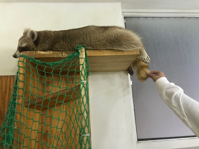 라쿤은 사람을 피해 의자 뒤나 택배 상자가 쌓여 있는 창고에 몸을 숨겼다. 쉴 수 있도록 마련된 구조물마저 사람 손이 닿아 무용지물이었다. 미어캣은 좁은 사육장 내에서 케이지 사이사이와 담요 밑으로 숨기 바빴다.