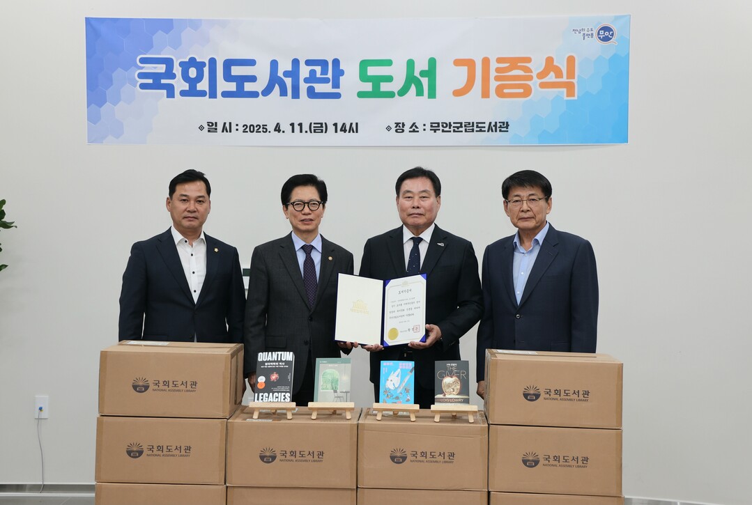 전남 무안군이 지역 독서문화 저변 확대를 위해 국회도서관 책 700여 권을 기증받았다고 12일 밝혔다.