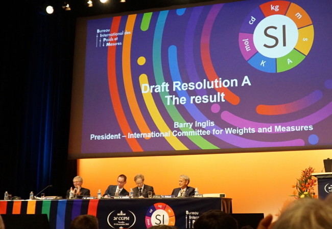 이는 지난해 11월 16일 제26차 국제도량형총회(CGPM)에서 의결된 내용이다. 4개 단위가 한꺼번에 바뀌는 것은 역사상 처음 있는 일로, 이번 재정의를 통해 7개 기본단위는 모두 시간이 지나도 변하지 않는 기본상수를 정의에 활용하게 됐다.