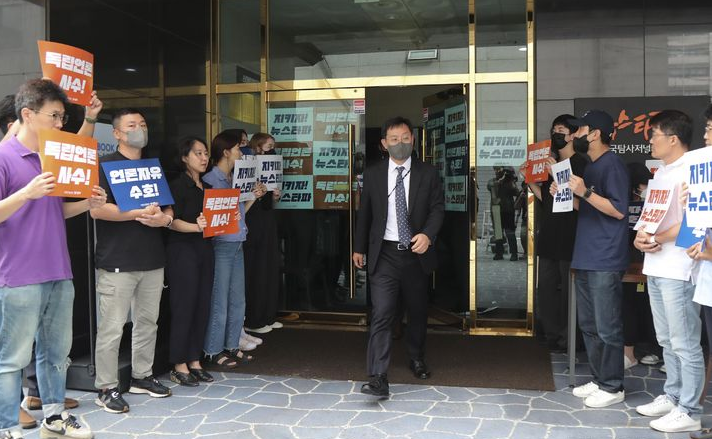 뉴스타파, 구호 외치고 대치…野 "대언론 선전포고"