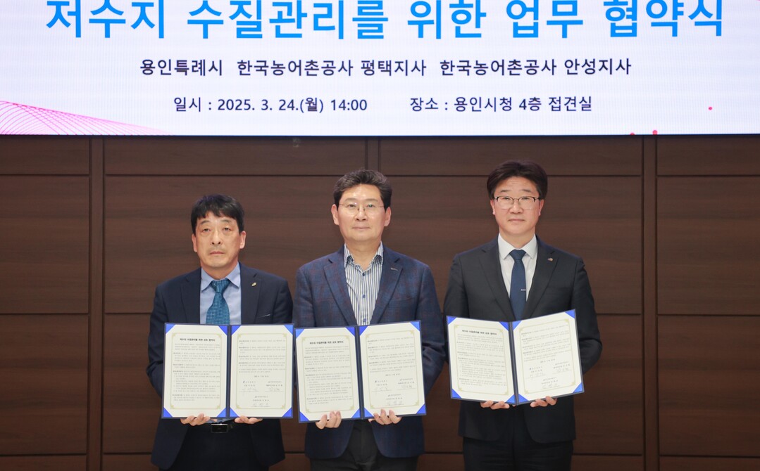 용인시가 기흥·이동·용담 등 관내 3곳 저수지의 안정적인 농업용수 공급과 수질 개선, 효율적인 관리를 위해 한국농어촌공사와 손을 잡았다.