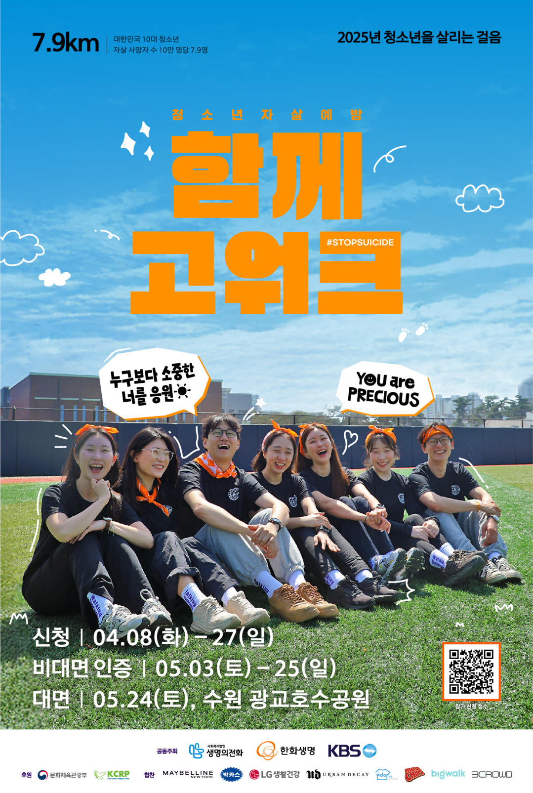 오는 27일까지 홈페이지를 통해 대면 500명, 비대면 2000명 총 2500명을 선착순 모집한다. 참가비 2만5000원은 전액 청소년 자살예방사업에 사용된다.