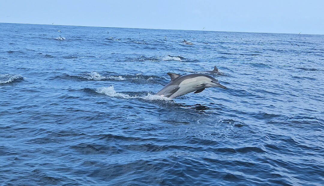 ▲ 고래바다여행선이 장생포 앞바다에서 포착한 돌고래떼 모습 [울산 남구청 제공]