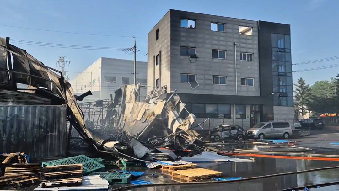 ▲ 11일 오후 4시 42분 발생한 화재로 잿더미가 된 용인시 처인구 모현읍의 폴리에틸렌 폼 제조 공장 건물. [경기도소방재난본부 제공]