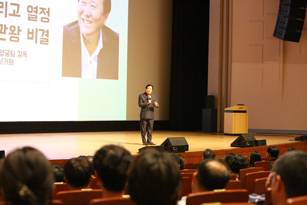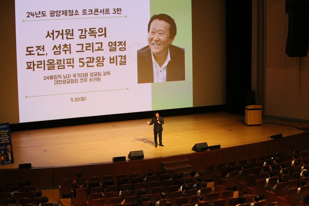 ▲ 지난달 30일 포스코 광양제철소 백운아트홀에서 서거원 전 양궁대표팀 감독 초청 토크콘서트가 열리고 있다. [광양제철소 제공]