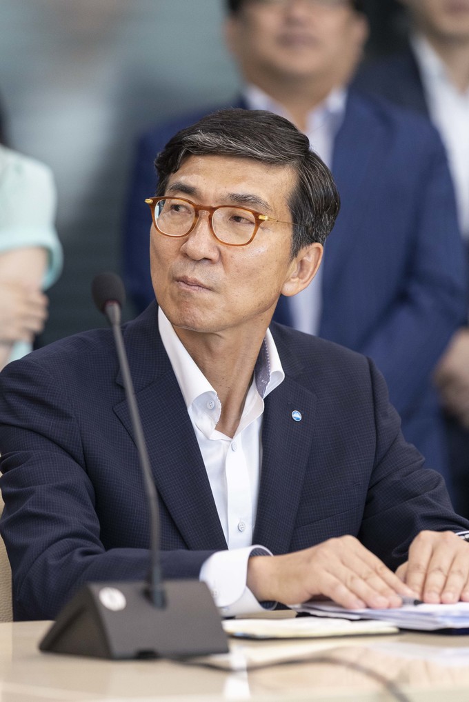 신명혁 우리은행 부행장이 22일 오후 서울 중구 우리은행 본점에서 열린 '포용적금융 생태계조성을 위한 업무협약식'에 참석하고 있다.