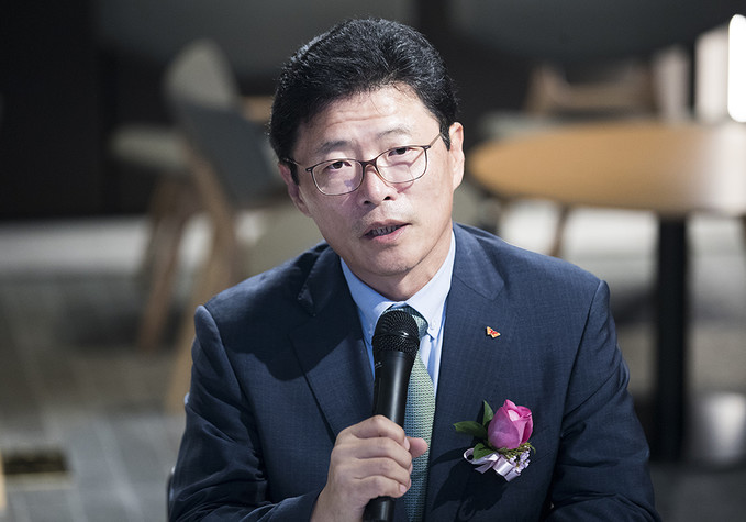 이영희 SK SUPEX추구협의회 SV위원회 위원장이 10일 오후 서울 종로구 SK서린빌딩에서 열린 '주거복지·도시재생분야 공공·민간 협업을 통한 사회적 가치 측정 및 창출 확산을 위한 포괄적 업무협약식'에서 인사말을 하고 있다.
