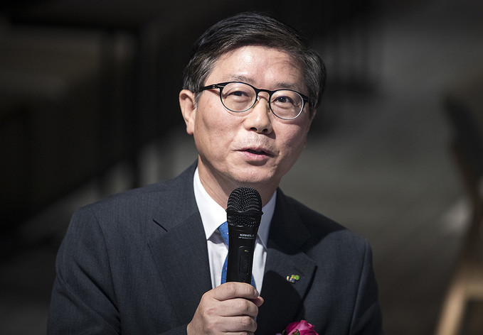 변창흠 한국토지주택공사 사장이 10일 오후 서울 종로구 SK서린빌딩에서 열린 '주거복지·도시재생분야 공공·민간 협업을 통한 사회적 가치 측정 및 창출 확산을 위한 포괄적 업무협약식'에서 인사말을 하고 있다.