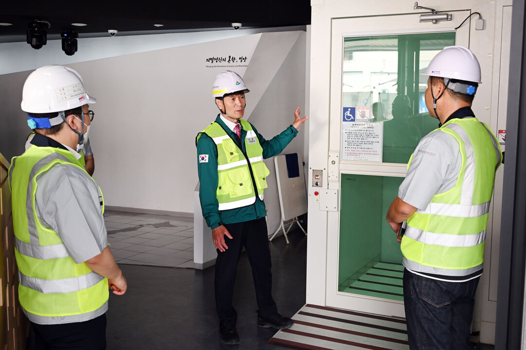 ▲ 안병구 시장이 28일 의열기념관을 찾아 다중이용시설 합동 안전점검을 실시하고 있다.[밀양시 제공]